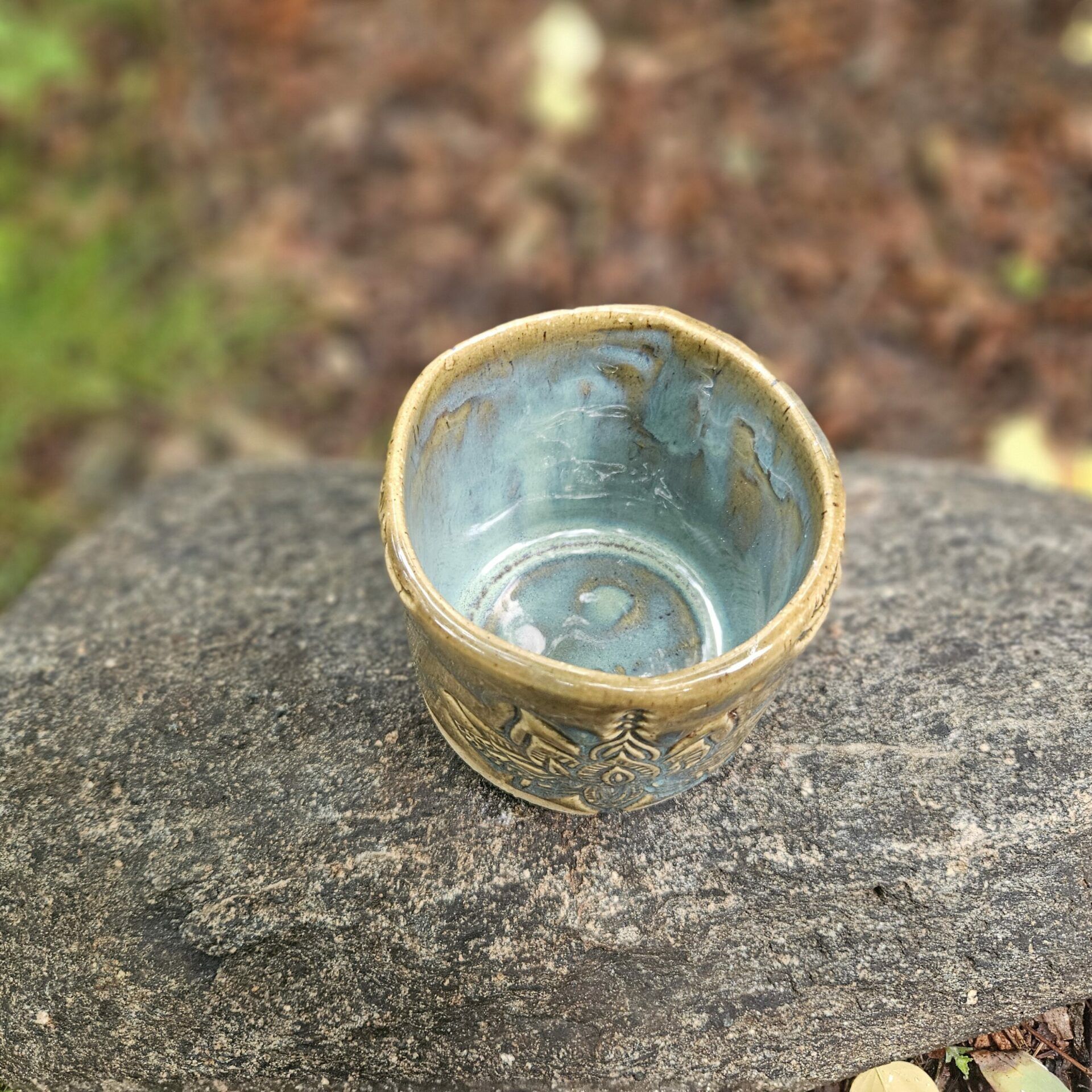 Dieser Becher unterstützt dich dabei, das Ritual zu vertiefen: Die Lotusblüte erinnert dich daran, dass selbst aus dem tiefsten Schlamm etwas Wunderschönes wachsen kann. Die erdigen Farben bringen dich in deine Mitte, während das Türkis deinem Herzen Raum gibt, sich zu entfalten.