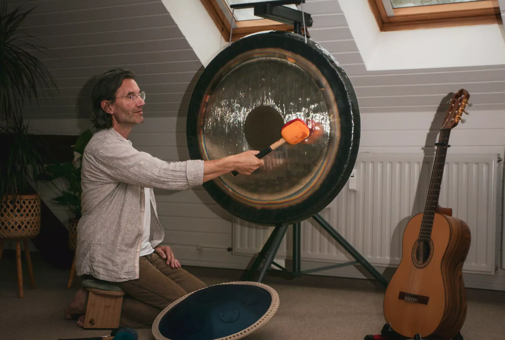 Gong-Meditation ist eine Form der Klangheilung, bei der ein großer Gong verwendet wird, um einen meditativen Zustand und tiefe Entspannung zu fördern. Während der Sitzung liegen die Teilnehmer auf dem Boden und lauschen den harmonischen Schwingungen des Gongs, die sanft in den Raum dringen und den Körper durchdringen. Diese Klänge wirken auf zellulärer Ebene und können Stress abbauen, die Energiezentren des Körpers ausgleichen und eine erweiterte Bewusstseinserfahrung fördern.