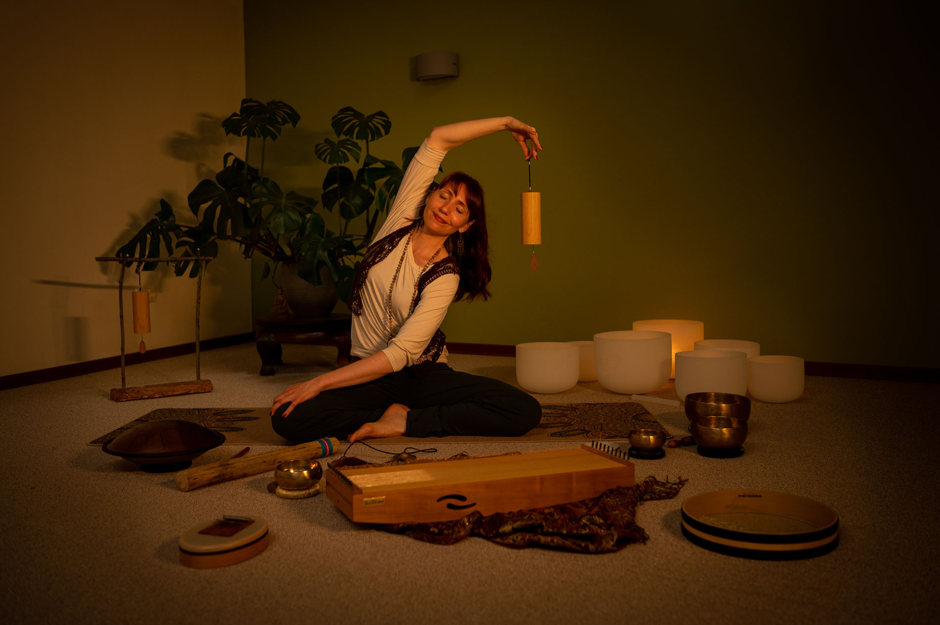 Das Spiel der verschiedenen Instrumente fördert eine tiefe Entspannung, während du die Asanas hältst.